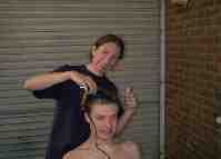 Next thing i know, Chainsaw says he wants his head shaved, I say, lets do it, we whip out the Dave Mustaine do it yourself kit, and i attack the hair. |